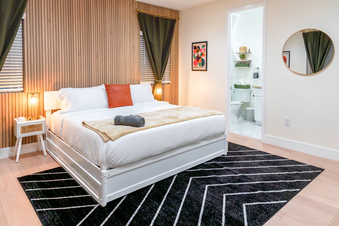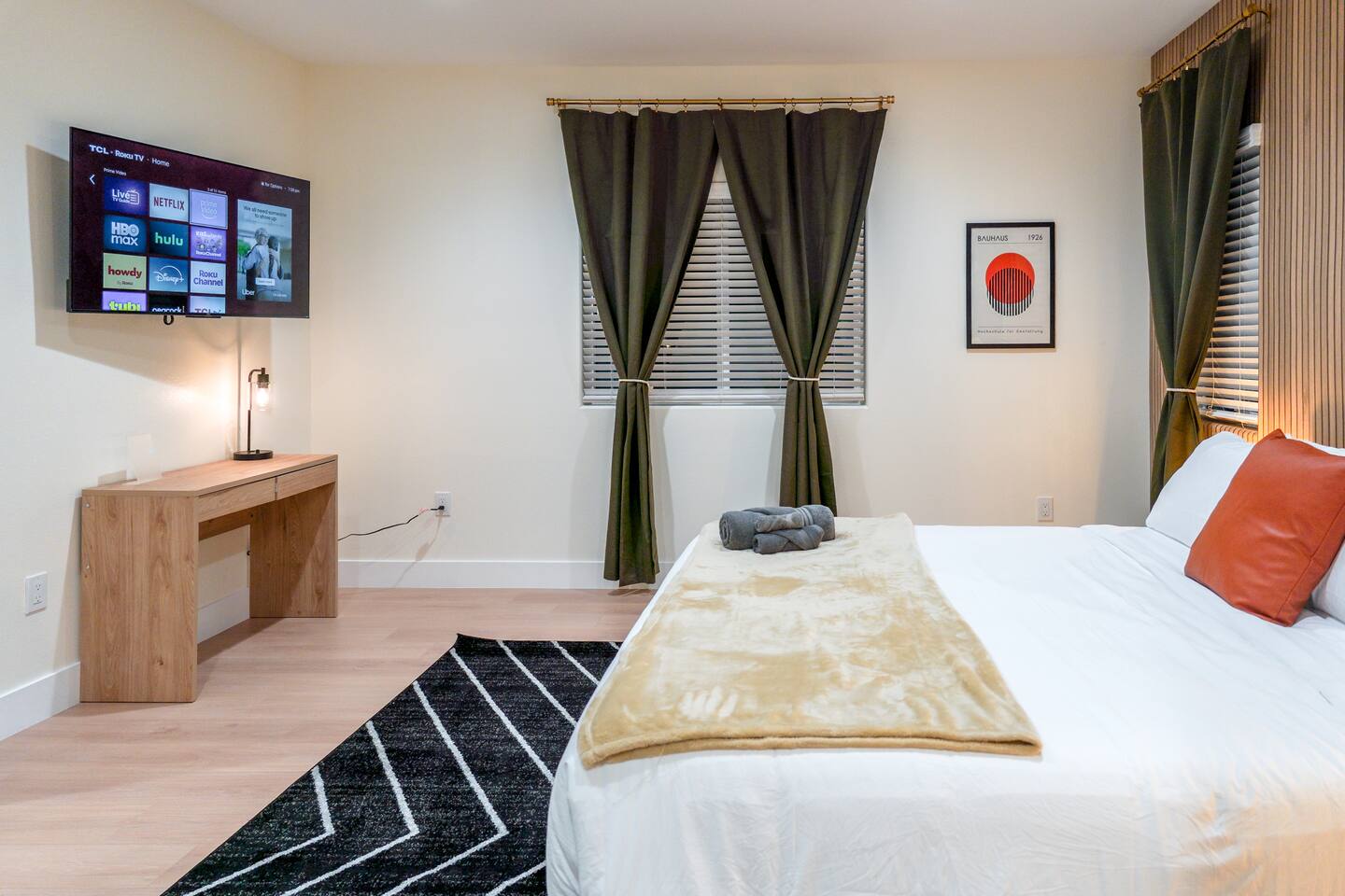 Welcome to our modern 3-bedroom, 2.5-bathroom, 2-story unit in Orange County, California! Enjoy modern luxury and comfort with a stylish living room, a fully equipped kitchen, cozy bedrooms, & a game room. Ideal for short or long stays, the home includes Smart 4K HDTVs, an in-unit washer/dryer, & many thoughtful extras. Each bedroom has comfortable beds and all the essentials for a relaxing stay. Enjoy the best of Southern California with nearby theme parks, shopping centers, & beaches.