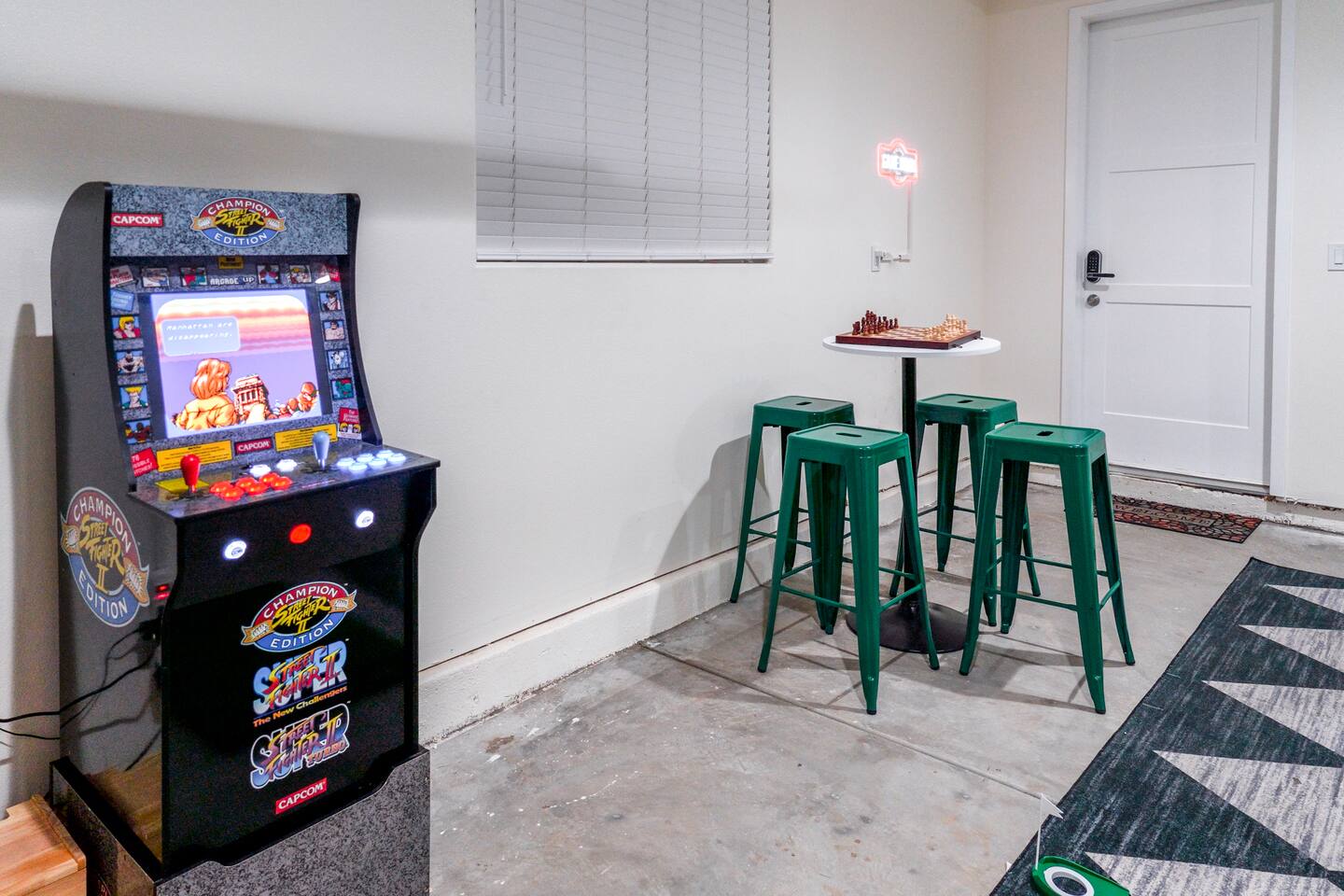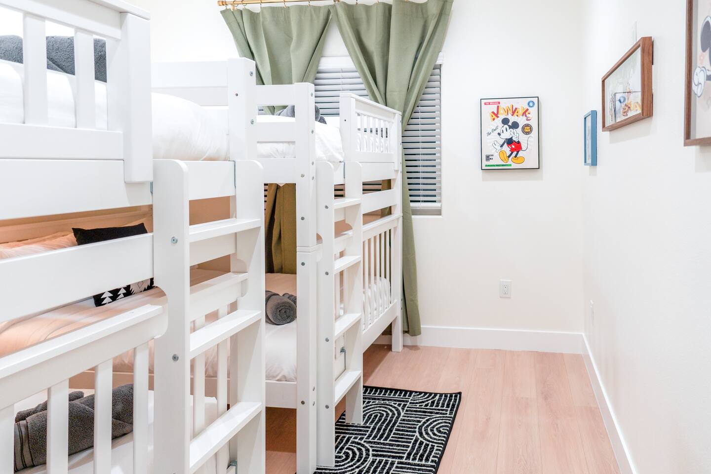 Welcome to this Modern Luxury Disney Dream Escape in Orange County! This stunning and spacious duplex unit in the heart of Orange County offers the perfect blend of luxury and comfort. Thoughtfully designed for families and groups, this modern retreat is fully equipped with premium amenities to make your stay relaxing, convenient, and unforgettable. ⭐ KEY FEATURES ⭐ ☀ Sleeps up to 14 guests ☀ Spacious 3-bedroom home with 2.5 bathrooms ☀ Fully stocked kitchen with coffee & tea bar ☀ Private outdoor patio downstairs ☀ Upstairs balcony with outdoor seating area ☀ 75" Smart Roku HDTV in the living room ☀ ARCADE GAME ROOM +Bar Table + Bar Stools with Chess and Checkers +Pool Table +Shuffleboard +Giant Dart Board +Pong Golf Putting Mat +Jumbo Connect 4 +Arcade Game with Street Fighter, Ninja Turtles, and more games +50" Smart Roku HDTV ADDITIONAL FEATURES: ☀ High-speed Wi-Fi (up to 600Mbps) ☀ 75" Smart Roku HDTV in the living room ☀ (2) 50" Smart Roku HDTVs in bedrooms + (1) 50" Smart Roku HDTV in Game Room ☀ Netflix (provided), Amazon Prime, Disney+, Hulu, HBO Max, Peacock, Apple TV Plus & more ☀ Plush beds with nightstands and charging ports in every bedroom ☀ In-unit washer and dryer with detergent + dryer sheets ☀ Central AC & Heating ☀ Balcony with outdoor seating ☀ Private outdoor patio downstairs ☀ Modern stainless steel appliances ☀ Large Luxury Bath Towels, Hand Towels, and Wash Cloths provided ☀ Basic toiletry items, soap, shampoo, conditioner, body wash, makeup remover wipes, and more are provided ☀ Early Luggage Drop off allowed with prior approval ☆☆☆☆☆ Expect a five-star stay with us. We have a full digital concierge to assist with any questions, local recommendations, and more. (Check out our other listings for Reference) ☆☆ Bedrooms ☆☆ 3 Bedrooms (All Upstairs): ☀ Master Bedroom: +King bed with twin trundle pull-out bed (sleeps 3) +Private en-suite bathroom (walk-in shower) +50" Smart Roku HDTV -Walk-in Closet ☀ Bedroom 2: +Two full-over-full bunk beds (sleeps 8) -Closet ☀ Bedroom 3: +King bed with twin trundle pull-out bed (sleeps 3) +50" Smart Roku HDTV -Closet ☀ Each bedroom includes: + Comfortable plush beds and pillows + Nightstands with lamps and convenient charging ports ☆☆ BATHROOMS ☆☆ 2.5 Bathrooms: ☀ Master Bathroom (En-Suite): Walk-in shower ☀ Full Bathroom (Upstairs): Walk-in shower ☀ Bathroom (Downstairs) ☀ Each bathroom is stocked with: + Large luxury bath towels, hand towels, and washcloths + Essential toiletries including soap, shampoo, conditioner, body wash, hair dryer, floss, Q-tips, and makeup remover wipes + A touch of elegance throughout ☆ ☆ LOUNGE/LIVING ROOM and FULL KITCHEN ☆ ☆ ☀ LIVING ROOM (1st Floor): + 75" Smart Roku LED TV + Comfortable seating on Sectional Couch and Armchair ☀ DINING AREA: + Spacious dining table (8 seats) ☀ CONVERTED ARCADE GAME ROOM GARAGE: +Bar Table with Chess and Checkers +Pool Table +Shuffleboard +Giant Dart Board +Pong Golf Putting Mat +Arcade Game with Street Fighter, Ninja Turtles, and more games +50" Smart Roku HDTV FULL KITCHEN: ☀ Fully stocked with modern stainless-steel appliances: + Pots, pans, kitchen knives, basic condiments, cooking spices, cooking oils, bakeware, dinnerware for adults and kids, wine glasses, cups, mugs, plates, and more. + Coffee and Tea Bar: Featuring Ninja 12-Cup Programmable Coffee Brewer and an assortment of Tea. PARKING: ☀ 2 reserved spots in private parking lot (fits 2 full-size vehicle) + first-come, first-served street parking FAMILY FRIENDLY: ☀ Kids’ dinnerware set (bowls, cups, utensils) provided ☀ Pack 'N Play/Travel crib available ☀ Baby Bath Support available ☀ Highchair for infants and toddlers ☀ Baby gate available upon request ☀ Popular board games for family fun LOCATED IN THE HEART OF ORANGE COUNTY: ☀ Disneyland Park - 15 mins / 10 miles ☀ Disney California Adventure - 16 mins / 10.67 miles ☀ Knott’s Berry Farm - 20 mins / 15 miles ☀ Universal Studios - 51 mins / 47 miles Beaches: ☀ Huntington Beach Pier - 20 mins / 15 miles ☀ Newport Beach - 17 mins / 11.33 miles ☀ Laguna Beach - 29 mins / 23.7 miles Shopping & Dining: ☀ Westminster Mall - 13 mins / 5.3 miles ☀ Bella Terra Shopping Center - 5 mins / 3.33 miles ☀ South Coast Plaza - 11 mins / 7 miles Sports & Entertainment: ☀ Angel Stadium - 13 mins / 8.67 miles ☀ Honda Center - 13 mins / 8.67 miles ☀ Dodger Stadium - 46 mins / 38.4 miles Centrally located near major highways and airports ☀ John Wayne Airport (SNA) - 15 mins / 8.67 miles ☀ Long Beach Airport (LGB) - 30 mins / 20 miles Convention Centers: ☀Anaheim Convention Center - 14 mins / 5.2 miles ☀Long Beach Convention Center - 32 mins / 24 miles ★☆ Book Your Stay Today and Let Us Take Care of You! ☆★ Enjoy a modern, luxurious experience in the heart of Southern California!